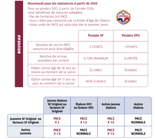 Produire en Selle Français Originel avec une jument possédant des prime PACE vous donne droit à des primes